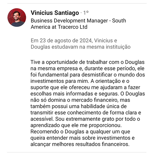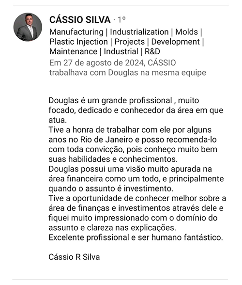 Formado em Engenharia e especialista em Mercado Financeiro desde jovem, atuei por 15 anos como gestor em grandes empresas, com resultados amplamente reconhecidos.